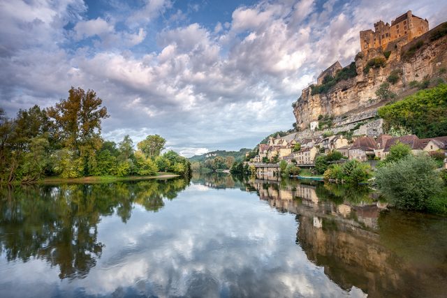 Situated in Southwest France, between the Aquitaine Basin and Massif Central, Dordogne is the third largest département (county) in France. The striking Dordogne river that divides the landscape rises in the Massif Central and continues flowing west for over 400km to the Bec d’Ambès, north of Bordeaux. The beauty in this region can be found in the bucolic countryside that’s peppered with storybook châteaux and hilltop bastides (fortified villages) which stand high above the Dordogne river banks. Steeped in legend, the Dordogne River witnessed centuries of history and conflict, most notably when it was used as the frontier between the French and English forces during the Hundred Years War (1337-1453).