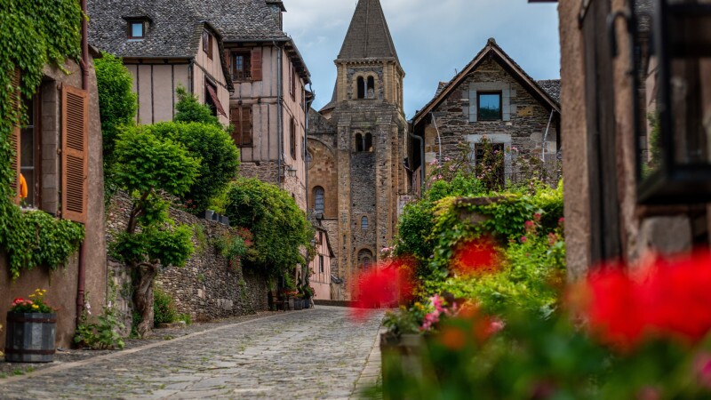 Arrive in Conques a true gem of Romanesque art nestled in lush greenery.
