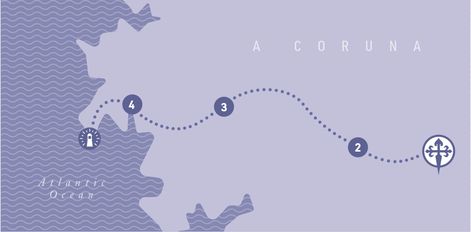 Your final walk begins across moorlands and mossy stone walls, with sweeping views of the Atlantic beside you. As you near the end of this stage, the route passes along beautiful sandy beaches such as Estorde, Sardineiro and Langosteira before reaching the fishing town of Finisterre. A short climb then takes you to Cape Finisterre and its historic lighthouse, where a statue of Santiago marks your arrival at the legendary 'End of the world.'