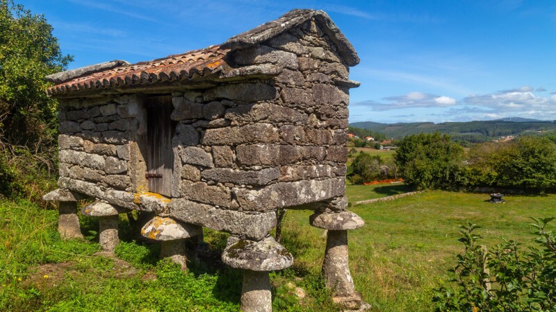 Today's walk follows an old royal path through quiet woodland and scattered hamlets. Along the way you will see the church of San Xian, the ancient Calvary of Zas, and megalithic remains, as well as traditional granite horreos, Galicia's distinctive stone granaries, that line the route before your walk ends in A Picota.