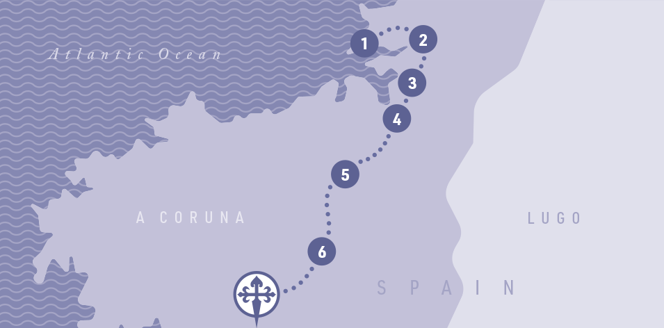 This stage leads you through peaceful forests and timeless medieval villages before reaching the seaside town of Mino. The route then continues toward Betanzos, offering magnificent views of the estuary and its marshlands. Entering the town across a historic stone bridge, you'll find yourself in the former provincial capital and home to the Andrade family. Here, you'll be amazed by the striking Gothic buildings and medieval charm. Be sure to try to the towns famed delicacy, the tortilla de Batanzos an take time to stroll along the scenic banks of the estuary.
