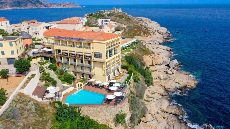 Overlooking the sea and just a stone’s throw from the Citadel of Calvi, the 3-star Saint-Christophe Hotel and its Altiora restaurant provide a true immersion in the island’s charm. With a large swimming pool, light-filled rooms, and wonderful views, it offers a warm and welcoming atmosphere in the heart of Calvi.