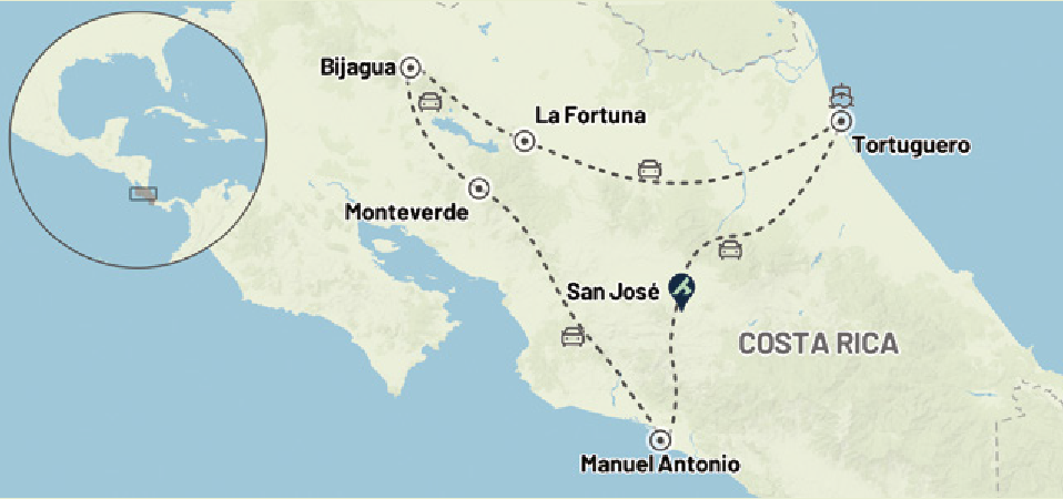 Experience the lush landscapes, abundant wildlife and vibrant ecosystems of Costa Rica on this unforgettable 13 day guided journey. From the winding canals and dense rainforest of the Tortuguero National Park to the misty cloud forests of Monteverde, the country's natural beauty is everywhere and teeming with life. Towering trees, cascading waterfalls and vibrant flora create a living tapestry where sloths, monkeys and exotic birds thrive, while local communities work to protect and celebrate this remarkable environment.