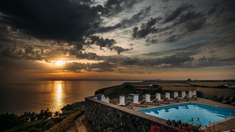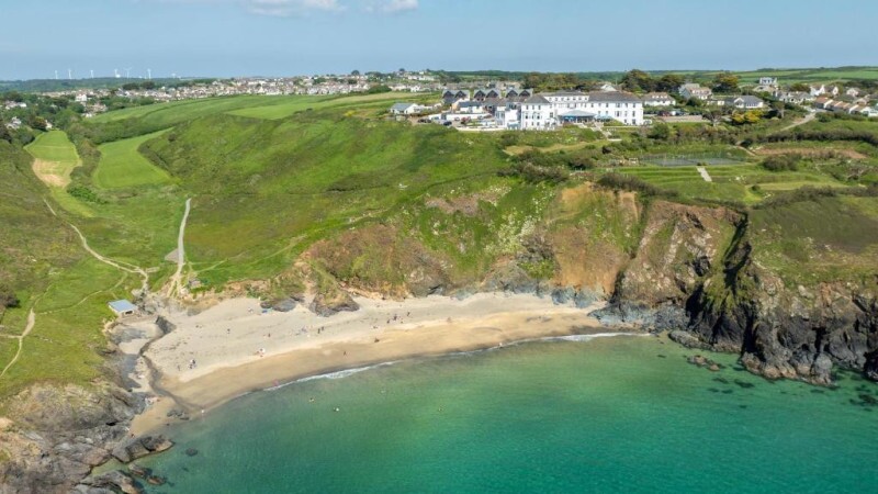 The Polurrian Hotel is a boutique hotel in Mullion, Cornwall, beautifully perched on a clifftop overlooking the Atlantic Ocean, with exclusive access to a private sandy beach. Originally built in 1890, it combines timeless charm with modern comfort.
